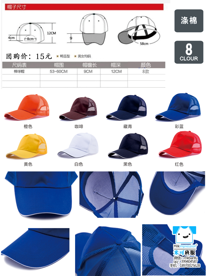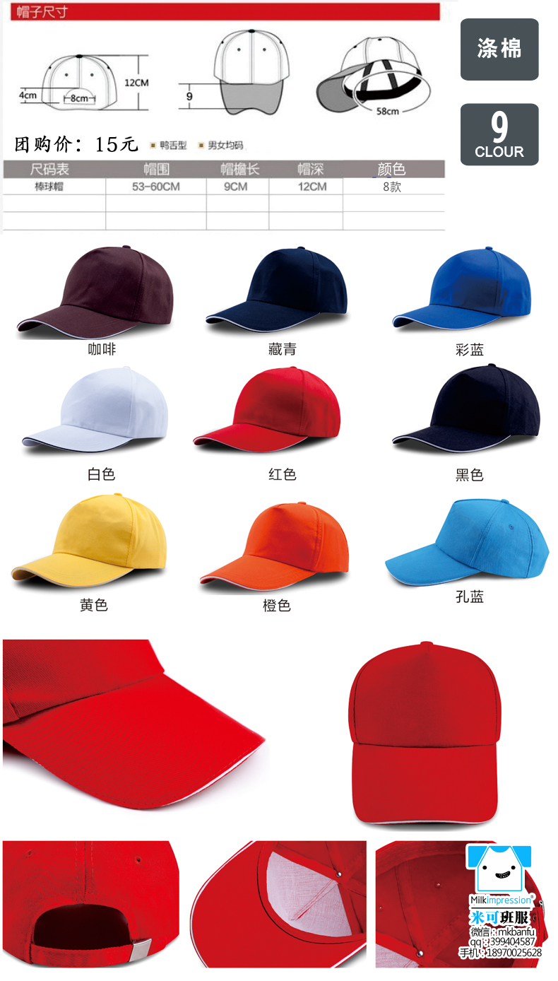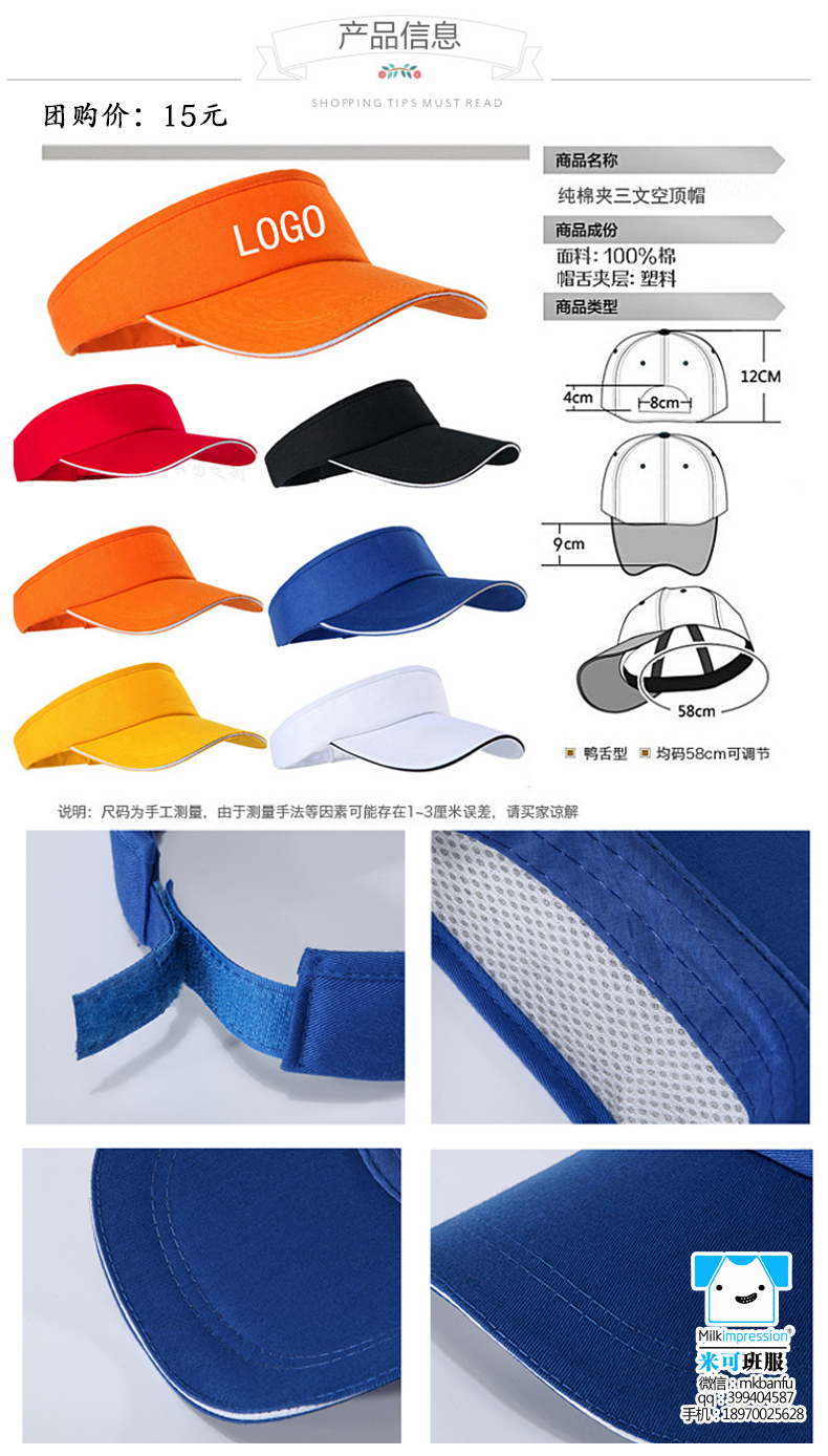 简介:定制运动户外太阳帽空顶帽棒球帽 聚会 班服 印字加 印LOGO