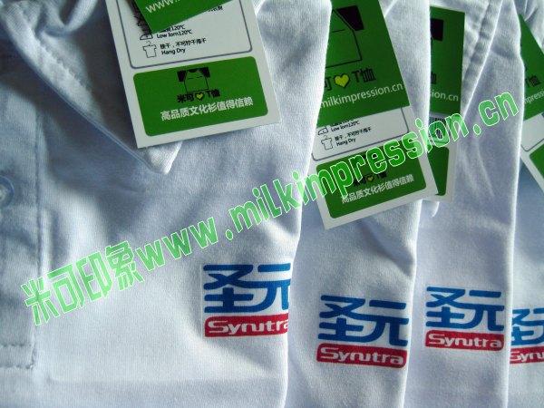 简介:圣元营养国际集团订购的活动文化衫,采用的是高档次的纯棉翻领空白T恤,圣元集团要求此次T恤图案方面以简洁为主,凸显圣元主题即可,文化衫图案搭配上尽量避免花哨,因此只在胸口,后背,袖子处印制了圣元集团的企业LOGO。