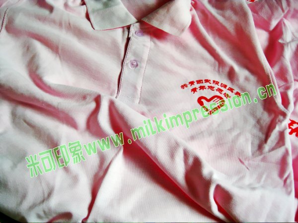 简介:武陵县团委订购的志愿者文化衫,采用200G珠地棉翻领polo衫,粉红色的空白polo衫搭配大红色图案。图案设计简单大方。