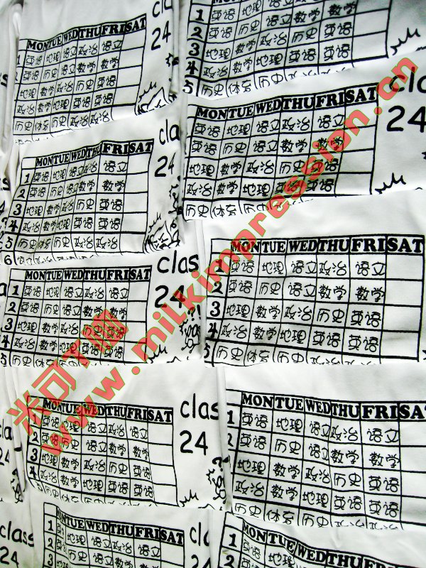 简介:陕西汉中南郑中学班服,采用的是200精梳弹力棉空白T恤,图案设计以高中生活为主,课程表的形式突出了这一时期紧张的课程安排,也可以为以后的大学生活留下美好的回忆。