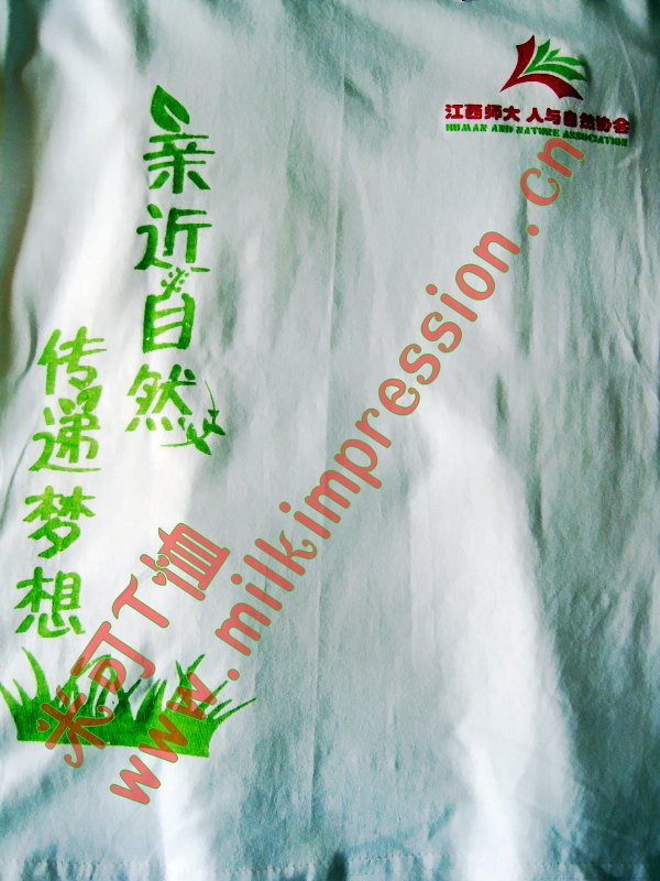 简介:江西师范大学人与自然协会定做的团体服,绿色班服主题,协会服采用的是180G男女分款的空白T恤。