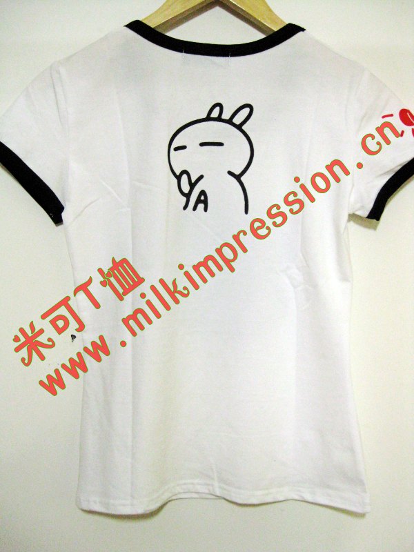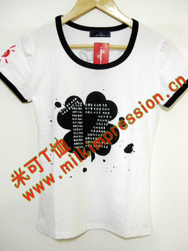 简介:广东深圳第二实验学校高中部同学定制的班服,采用190G空白T恤制作,前面是四叶草包含的全班同学的姓名,后面是可爱兔斯基偷笑的表情。