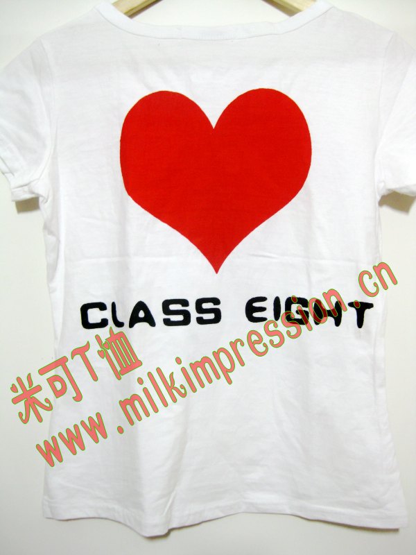 简介:广东省深圳市南山区高中部8班同学们订购的班服,采用200G纯棉t恤制作,纯白色的空白t恤搭配黑红相间的图案,班服设计图案以8班为主。