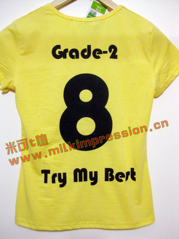 简介:广东省东莞市长安镇中学8班同学们订购的班服,采用亮黄色为主色调的空白t恤,班服图案设计简单明了,可爱卡通的造型适合中学时代的主题,190G的精梳棉材质也提升了班服的品质。