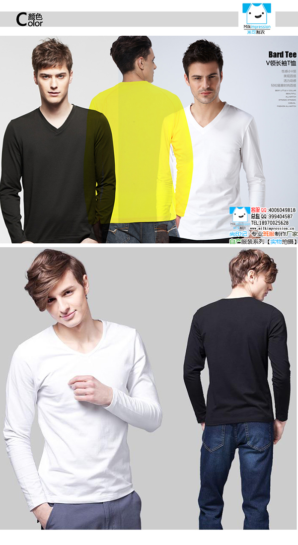 V领长袖文化衫款式