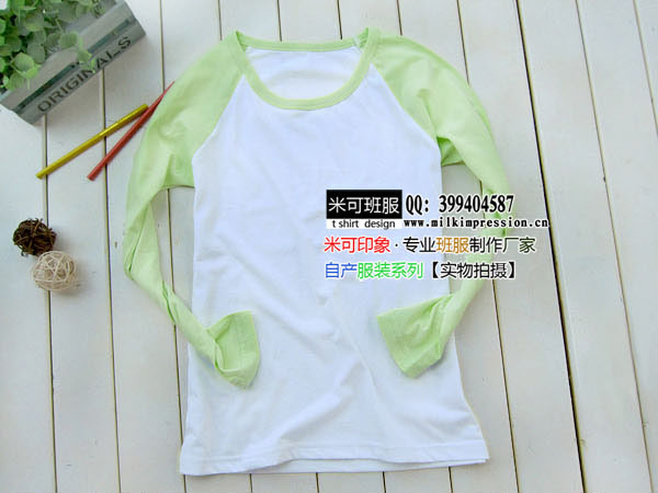 200克果绿色插肩款长袖空白T恤-文化衫定做-班服