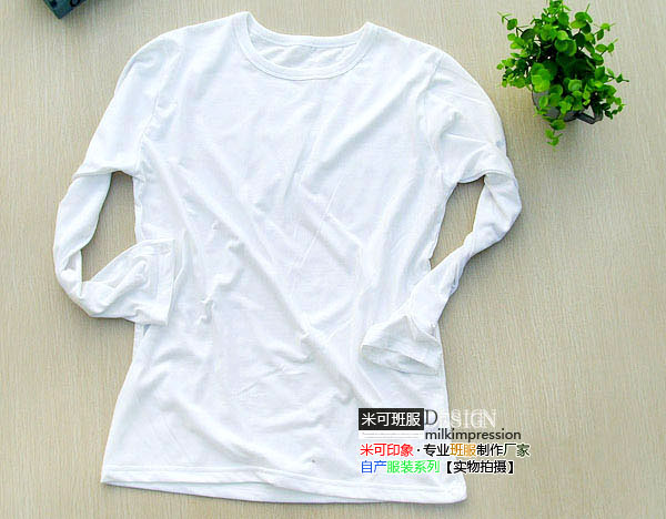 200克纯白色插肩款长袖空白T恤-文化衫定做-班服