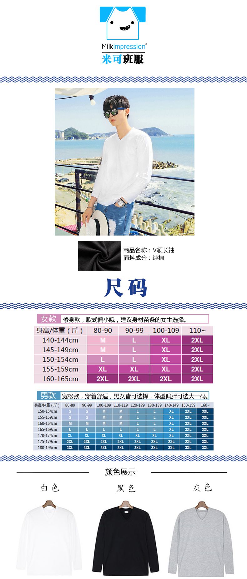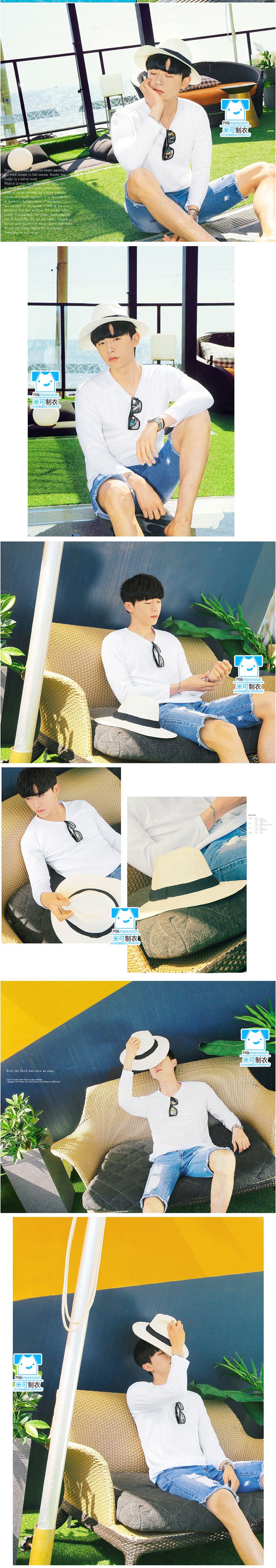 V领长袖文化衫款式
