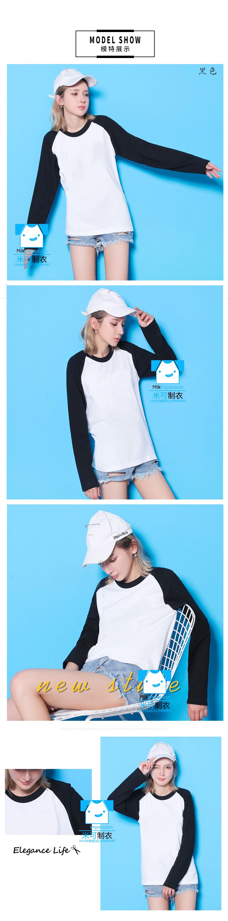 200克纯白色插肩款长袖空白T恤