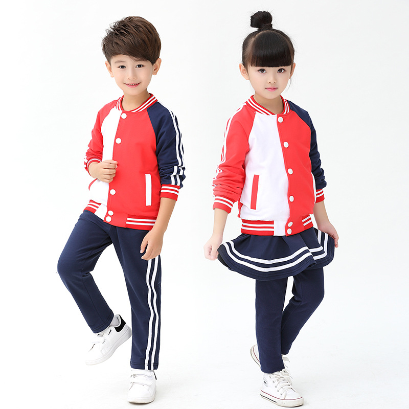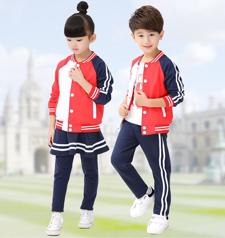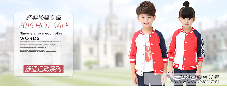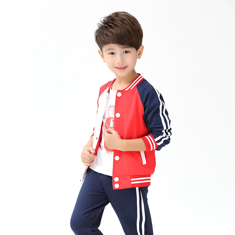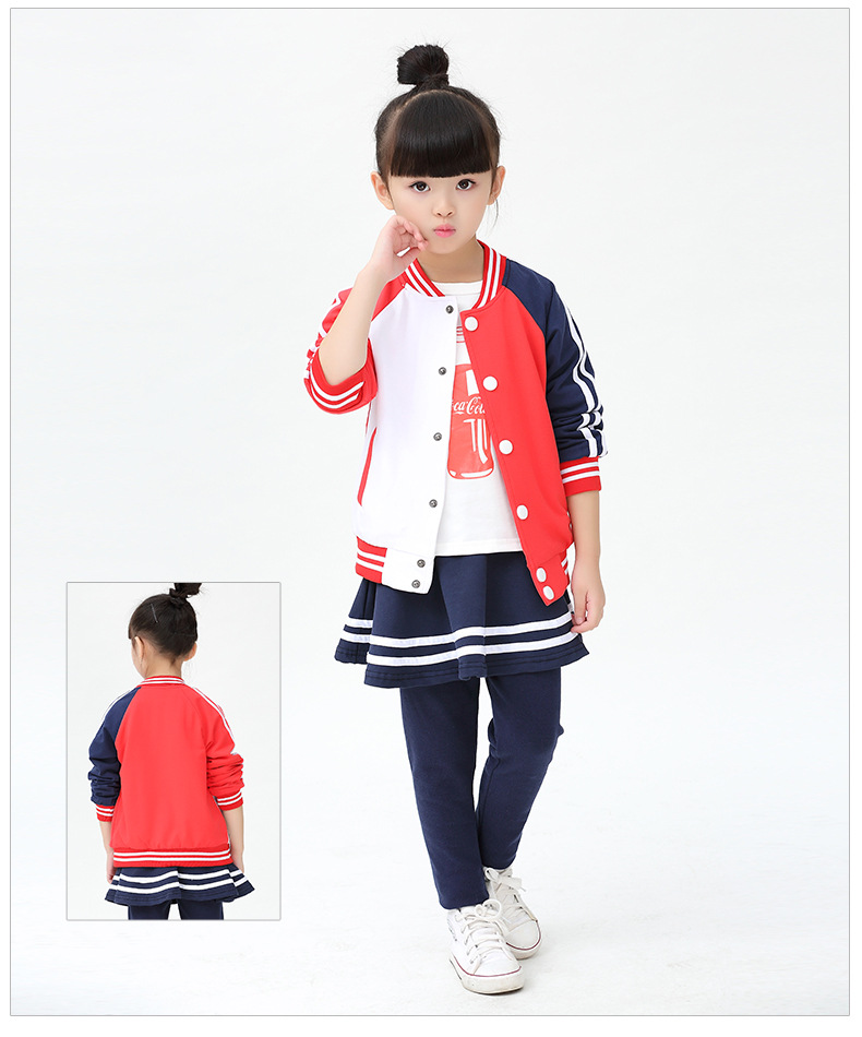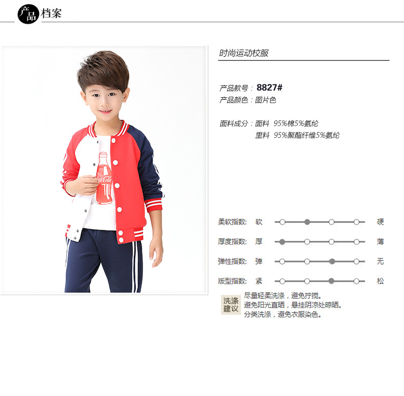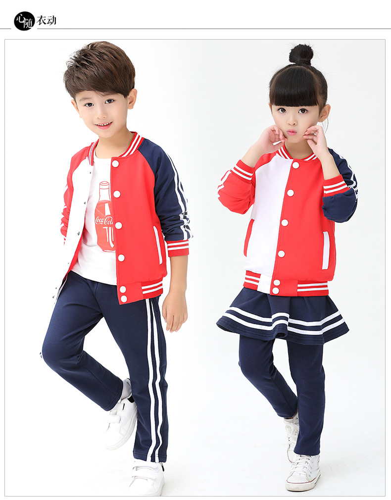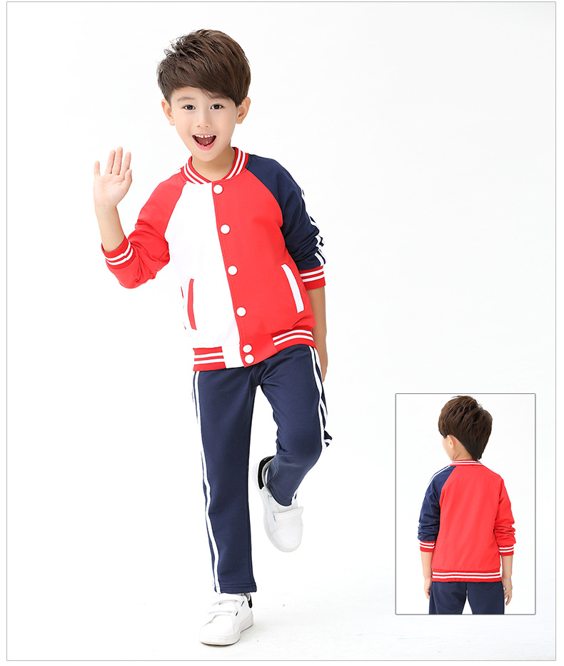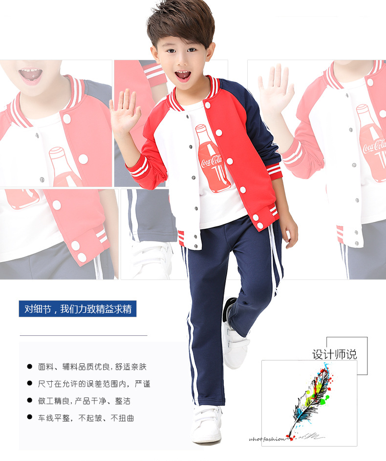 简介:定制儿童款时尚立领运动套装 班服 聚会 T恤 印字 活动 衣服印LOGO