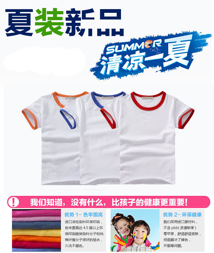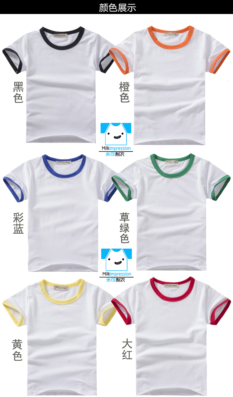 简介:定制儿童款撞色圆领短袖 聚会 T恤 班服印字 活动 衣服印LOGO