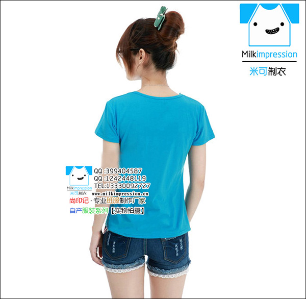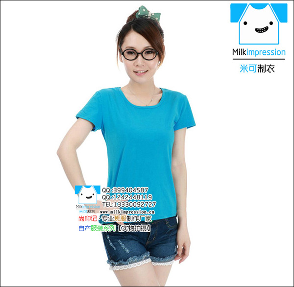 湖蓝色女款班服-高档精梳纯棉品质t恤