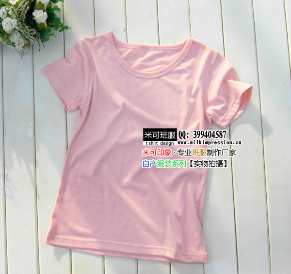 200克粉红色宽领全棉短袖空白T恤衫-文化衫-班服