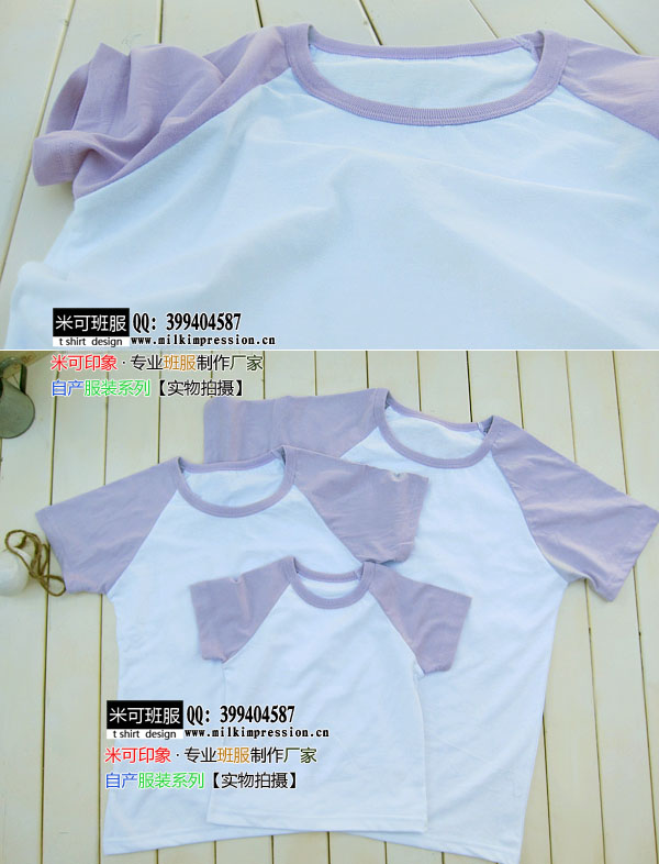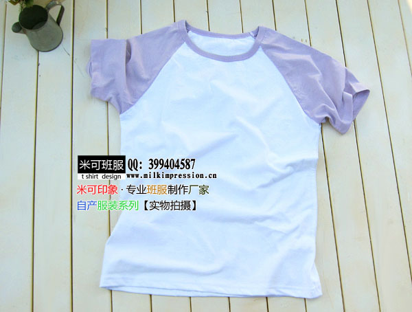 200克白搭紫色插肩款短袖空白T恤-文化衫定做-班服