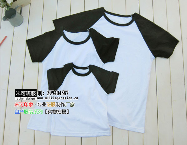 200克白搭黑色插肩款短袖空白T恤-文化衫定做-班服