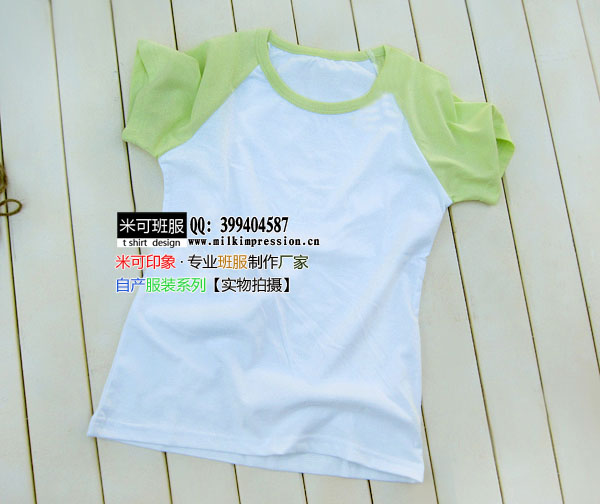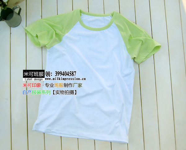 200克白搭浅绿插肩款短袖空白T恤-文化衫定做-班服