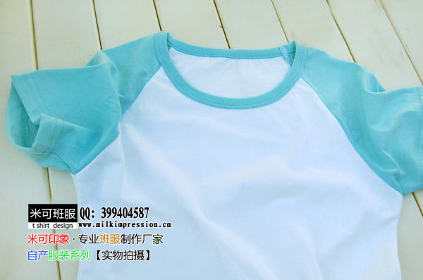 200克白搭蓝色插肩款短袖空白T恤-文化衫定做-班服