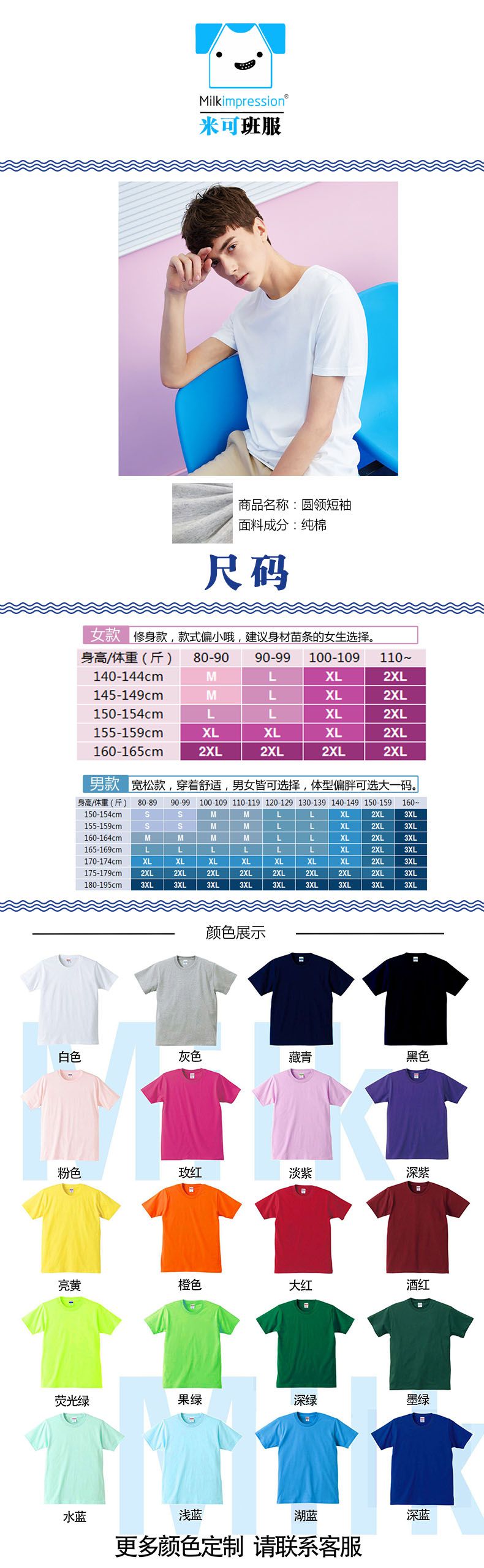 简介:定制普通精梳棉纯色圆领短袖T恤 班服 聚会 T恤 印字 活动 衣服印LOGO