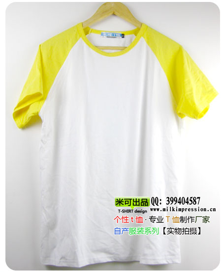 简介:210克班服- 短袖-浅黄色插肩款式短袖空白t恤,订购请联系客服QQ399404587或登录米可商城www.milkimpression.com挑选