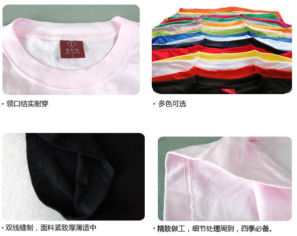 180克 粉色圆领短袖t恤 、班服短袖、学生校服、广告衫、班服设计、F牌,SUN
