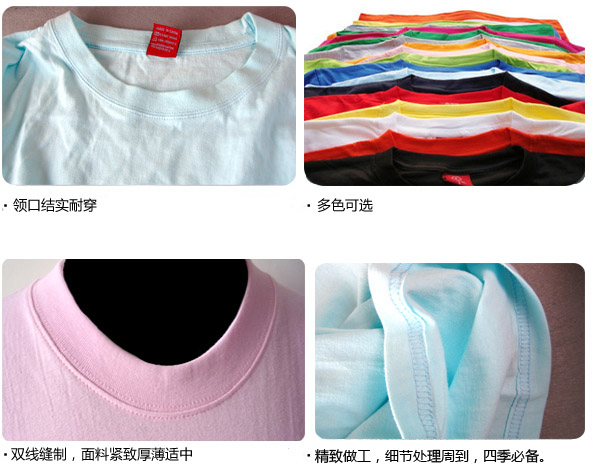 180克 浅蓝色圆领短袖t恤 、班服短袖、学生校服、广告衫、班服设计、纯色t恤