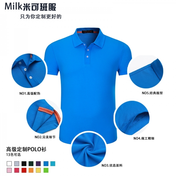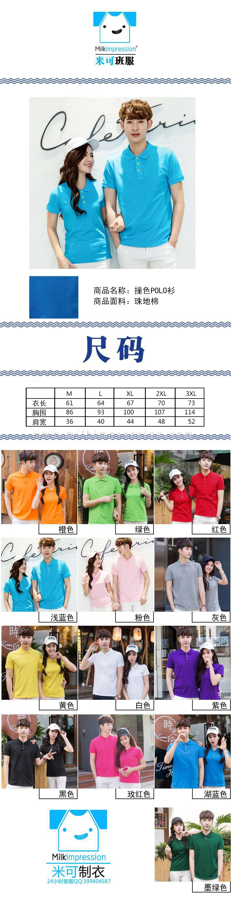 简介:POLO衫定制纯色翻领撞扣色t恤DIY工作服t恤订做文化衫广告衫印字