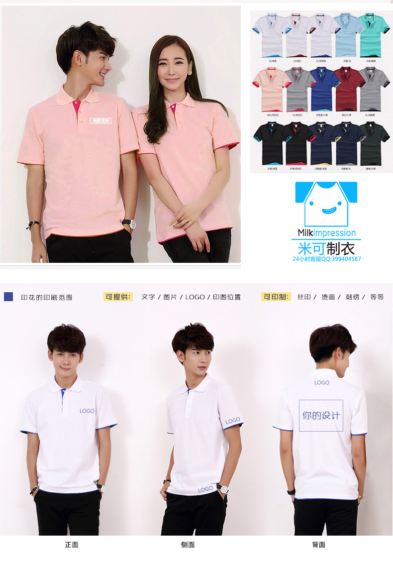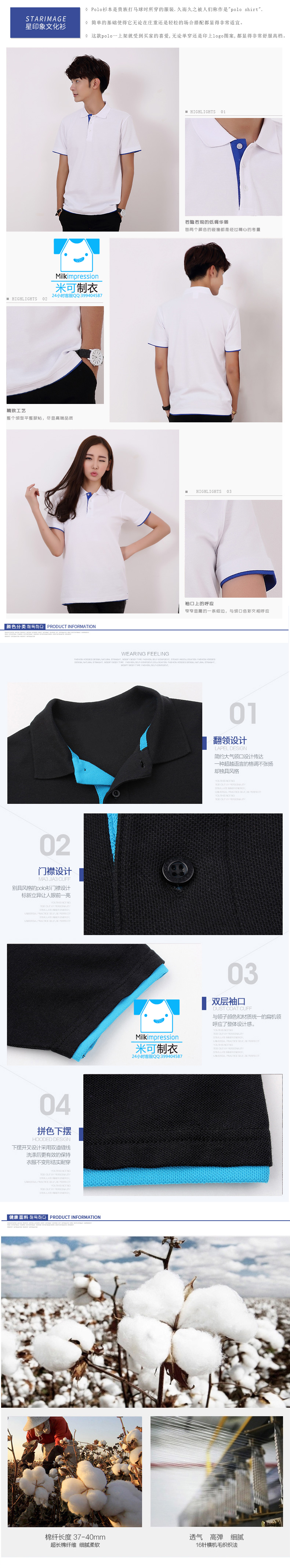 简介:POLO衫定制短袖撞色翻领t恤DIY工作服t恤订做文化衫广告衫印字