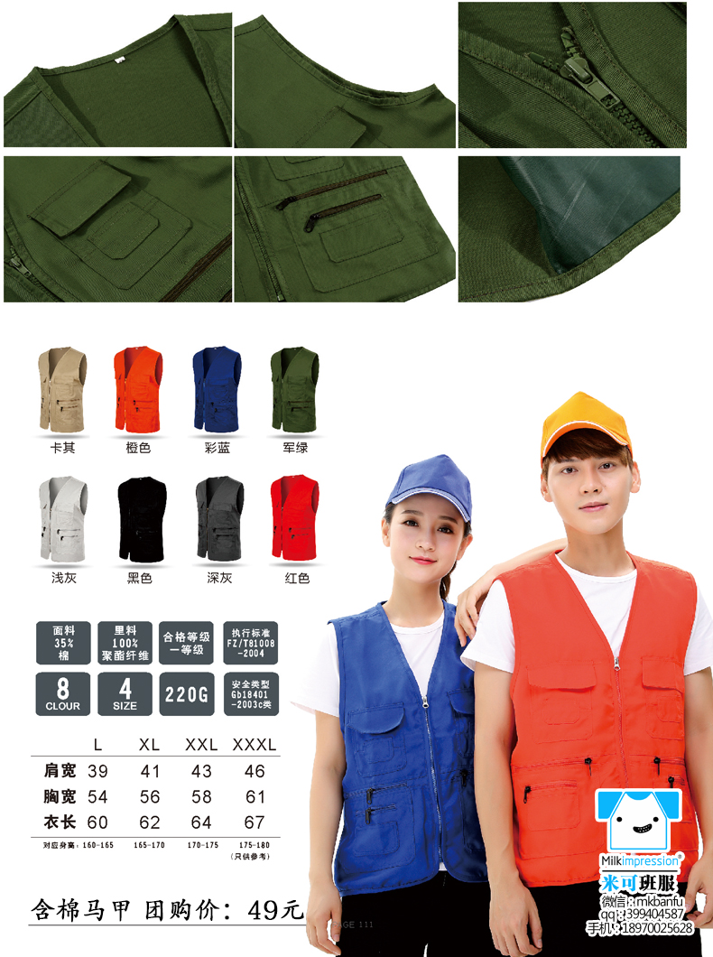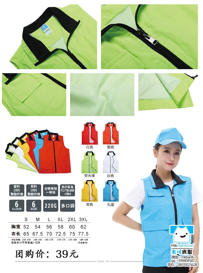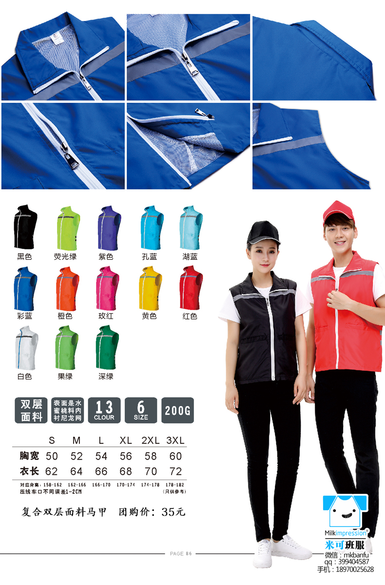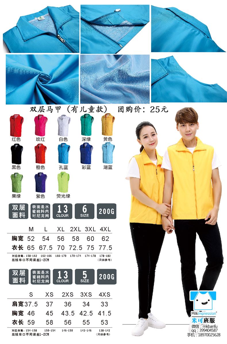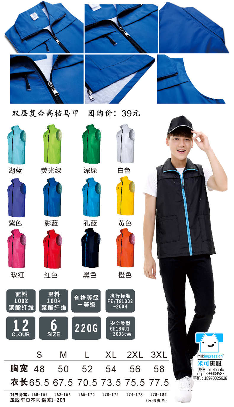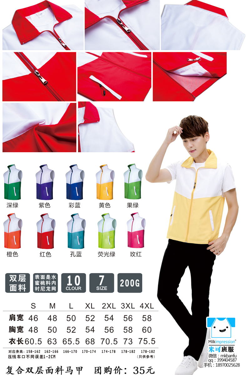 简介:定制复合双层面料马甲 高档马甲 含棉马甲 双层复合高档马甲 工服 义工服 聚会 班服 印字加 印LOGO