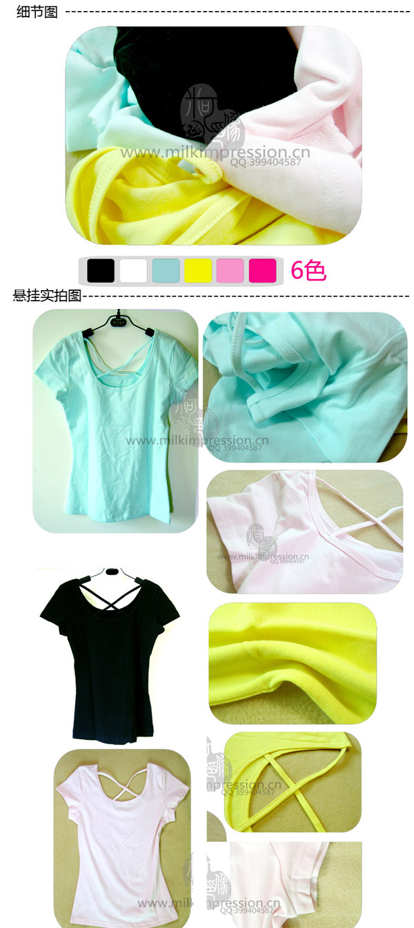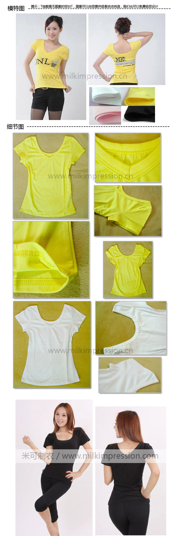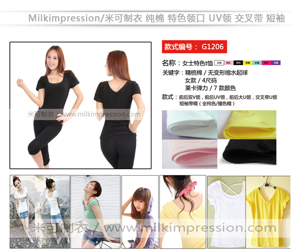 短袖旗袍款纯棉空白T恤
