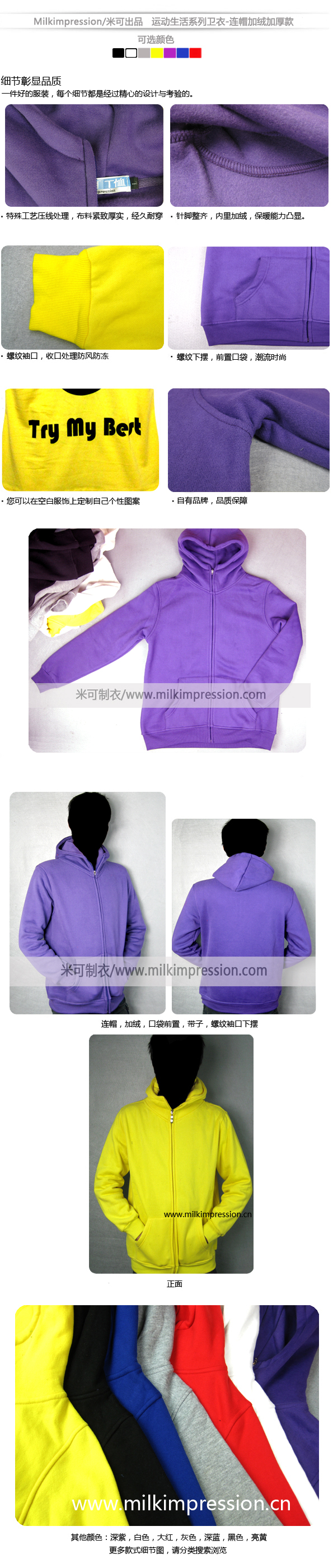 简介:卫衣 加绒加厚 连帽拉链 外套班服 深紫色