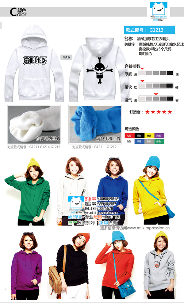 G1213加绒厚款套头戴帽卫衣班服