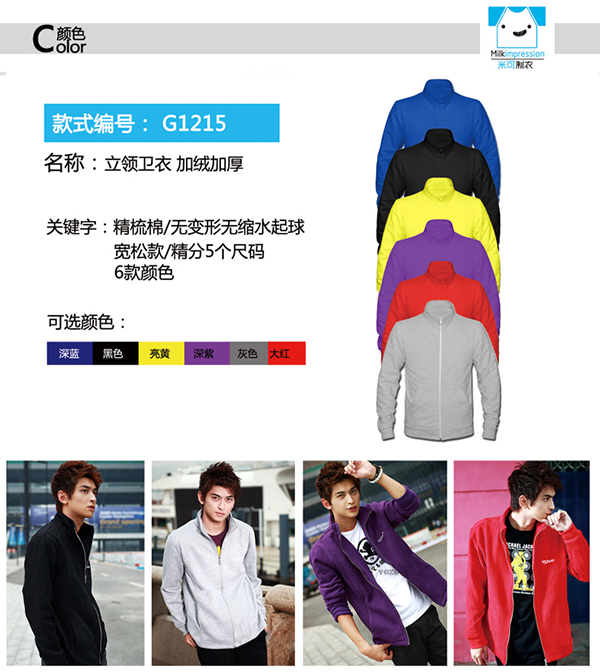 G1215立领拉链加绒厚款卫衣班服-米可制衣出品