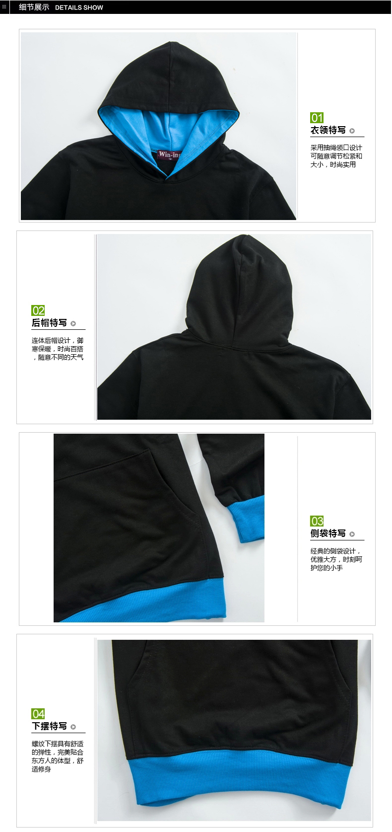 简介:新款韩版潮流撞色单纱卫衣班服系列款式定做