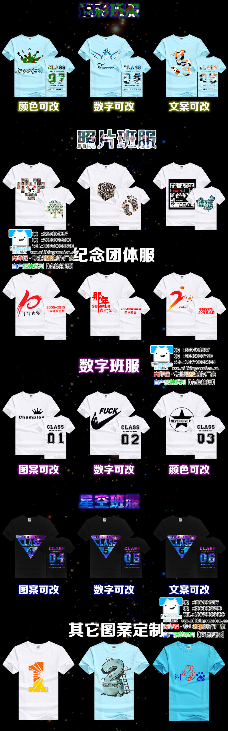 全身印班服数字字母全身印星空运动布圆领短袖t恤班服定制定做文化衫印图案
