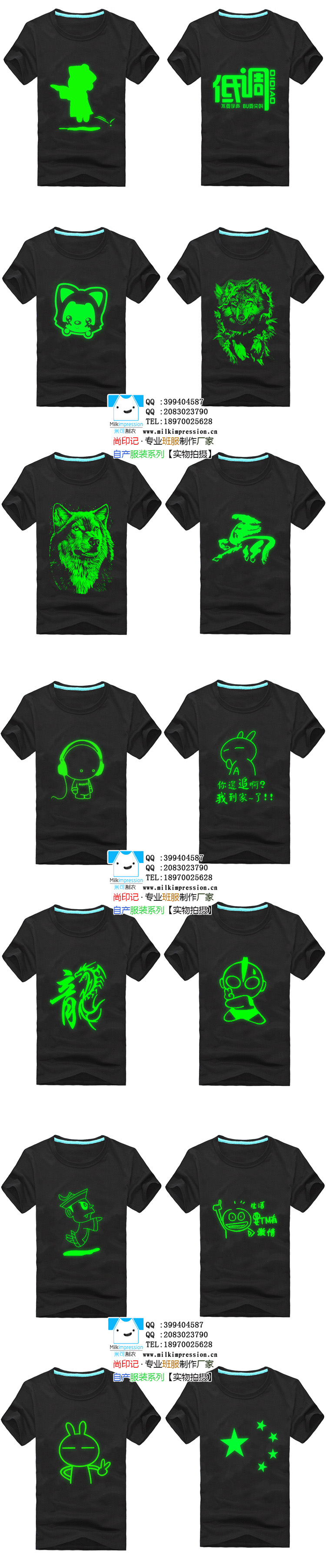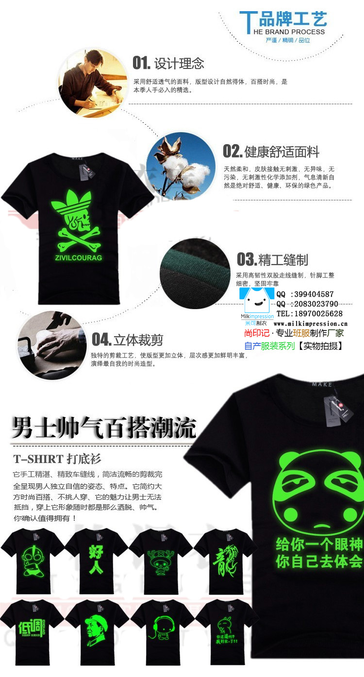 夜光班服个性夜光荧光T恤定制夜